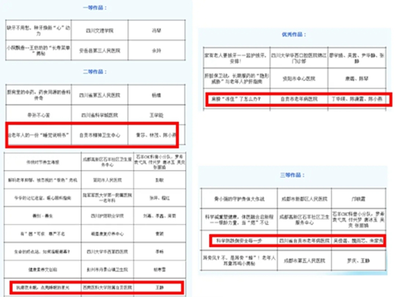 本次科普作品征集活動由四川省健康促進中心與四川省老年學學會聯(lián)合主辦,聚焦老年心理健康、慢病防治、體重管理等主題。我院醫(yī)護人員結合臨床經(jīng)驗,將專業(yè)知識轉化為通俗有趣的科普內(nèi)容,作品因內(nèi)容實用、形式新穎獲評審好評。